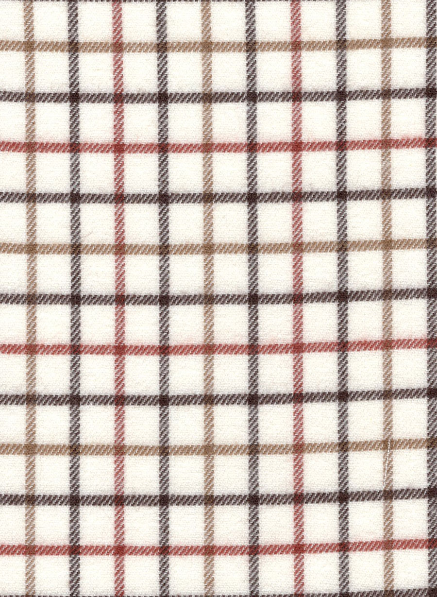Tan Brown Burgundy Brushed Twill Tattersall